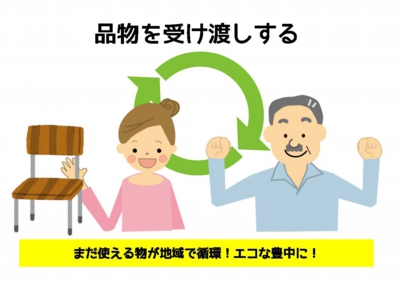 譲ったり、譲ってもらったりすることで、循環型社会形成やごみ減量につながります。