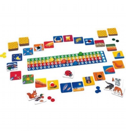 動物の特徴を当てて、得点ボードのブタを進めていくゲーム。