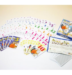 裏返しにしたカードをめくって、出た絵柄と同じ絵柄のカードを探して取り合う、神経衰弱とかるたを足したようなゲーム。