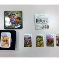 動物の大きさ、重さ、寿命を予想して正しい順番にカードを並べるゲーム。