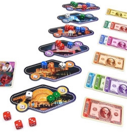 6つのカジノに置かれた賞金の獲得を目指し、サイコロを振って他のプレイヤーの動きも見ながら遊び進めていくゲーム。